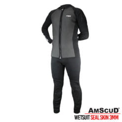This top uses Chill-Proof material to keep your torso and rear kidney area protected. It also uses a breathable compression fabric in the shoulders and arms to aid in endurance and muscle recovery. The compression fabric is SPF50+, so provides protection for your arms and shoulders from the sun. This top is designed for intense water sports where hard work is the priority and results are the focus. AmScuD Seal Skin’s Performance range has been created with the help of competition athletes. The designs use Chill-Proof material for full protection from the elements, flexible compression material to allow for maximum maneuverability during intense sports and neoprene for stretch and comfort.